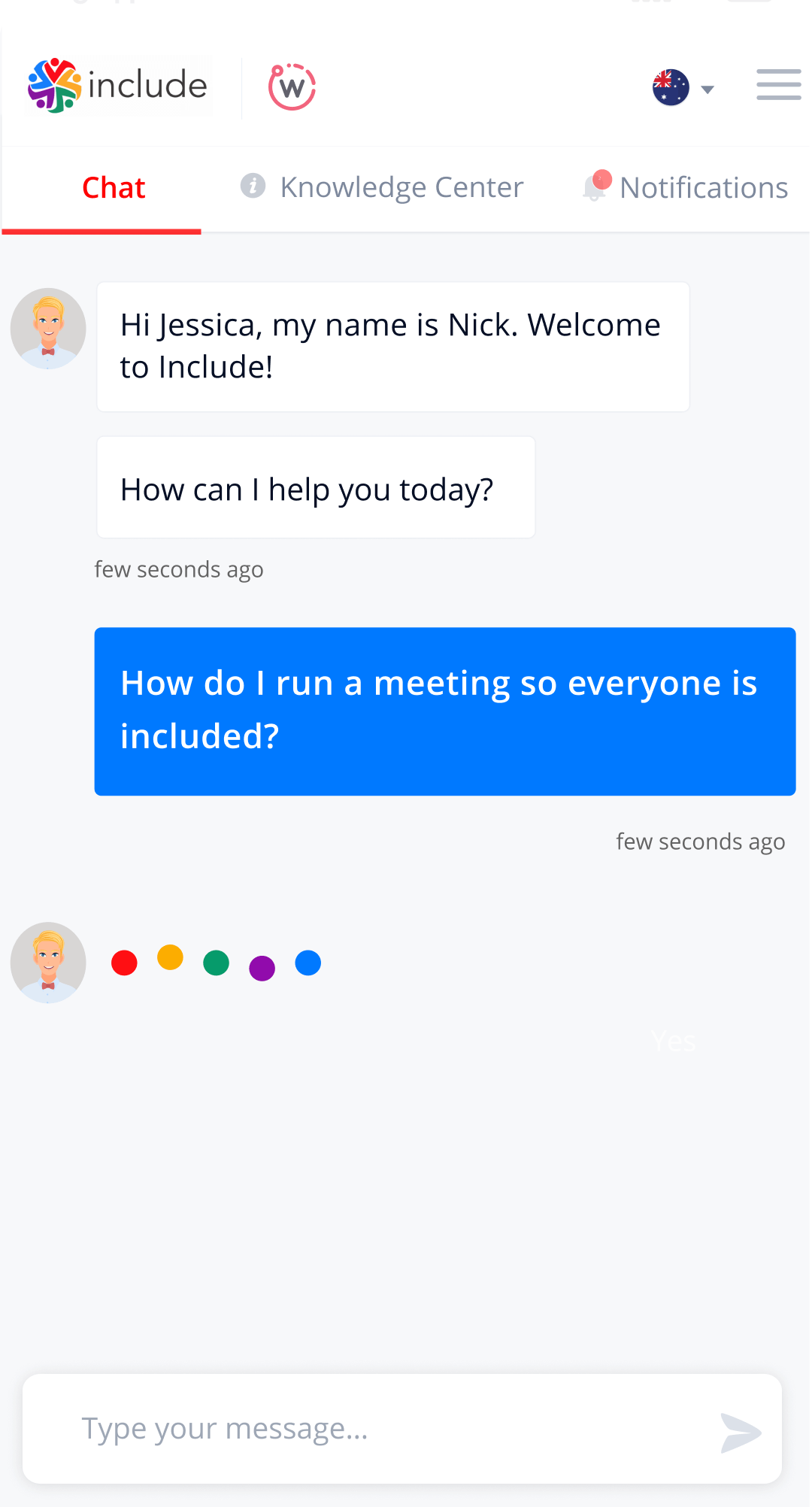 To be clear, WebileApps handles the mechanics of the chat service, providing only the to-and-fro communications, while Include manages search mechanisms and the knowledge base. This way, users receive an appropriate answer, admins can track gaps in the Inclusion Database, and the ML algorithms have data to learn from. On top of that, users can create chat rooms and search messages in chat history if needed.